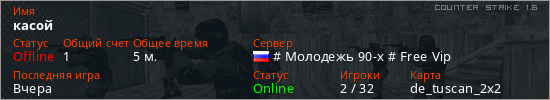 Последний раз был в сети Вчера Игрок с таким ником замечен на 10 серверах