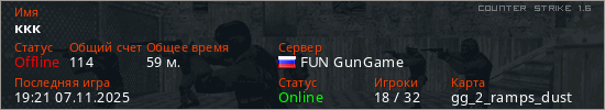 Играет на Counter Strike 1.6 сервере. Страна: РоссияПервый раз замечен 00:02 05.10.2024