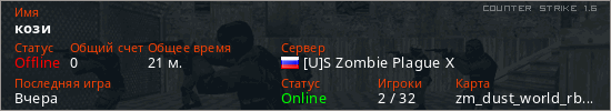 Играет на Counter Strike 1.6 сервере. Страна: РоссияПервый раз замечен 14:53 21.10.2024