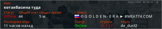 Играет на Counter Strike 1.6 сервере. Страна: РоссияПервый раз замечен 20:43 29.03.2026