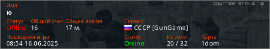 Последний раз был в сети 08:54 16.06.2025 Игрок с таким ником замечен на 20 серверах