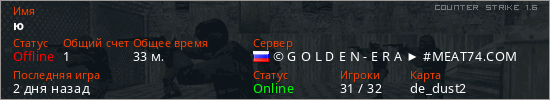 Последний раз был в сети 2 дня назад Игрок с таким ником замечен на 20 серверах