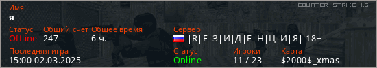 Последний раз был в сети 15:00 02.03.2025 Игрок с таким ником замечен на 48 серверах