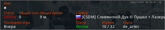 Последний раз был в сети Вчера Игрок с таким ником замечен на 47 серверах
