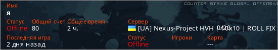 Последний раз был в сети 2 дня назад Игрок с таким ником замечен на 48 серверах
