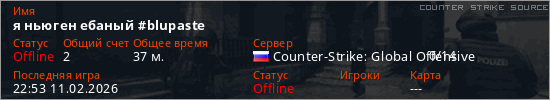 Играет на Counter Strike Source сервере. Страна: РоссияПервый раз замечен 23:13 05.02.2026