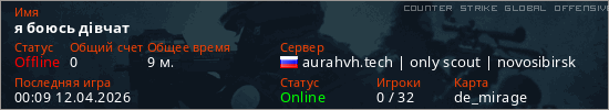 Играет на Counter Strike Global Offensive сервере. Страна: РоссияПервый раз замечен 23:36 11.04.2026