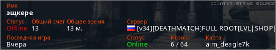 Последний раз был в сети Вчера Игрок с таким ником замечен на 21 сервере