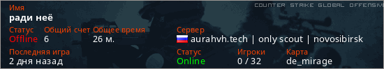 Играет на Counter Strike Global Offensive сервере. Страна: РоссияПервый раз замечен 23:09 02.04.2026