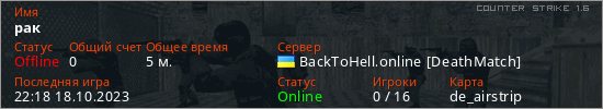 Играет на Counter Strike 1.6 сервере. Страна: УкраинаПервый раз замечен 21:25 18.10.2023
