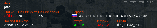 Играет на Counter Strike 1.6 сервере. Страна: РоссияПервый раз замечен 10:31 04.06.2023