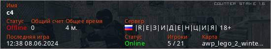 Играет на Counter Strike 1.6 сервере. Страна: РоссияПервый раз замечен 12:34 08.06.2024