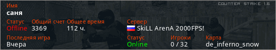 Последний раз был в сети Вчера Игрок с таким ником замечен на 44 серверах