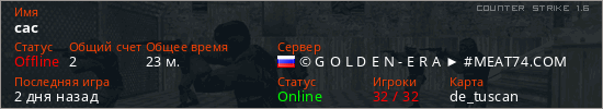 Играет на Counter Strike 1.6 сервере. Страна: РоссияПервый раз замечен 05:51 19.03.2023