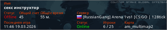 Играет на Counter Strike Global Offensive сервере. Страна: РоссияПервый раз замечен 12:26 14.03.2026