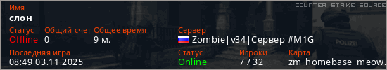 Играет на Counter Strike Source сервере. Страна: РоссияПервый раз замечен 06:08 30.10.2025