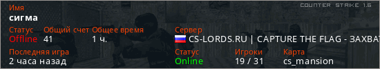 Последний раз был в сети 58 минут назад Игрок с таким ником замечен на 41 сервере