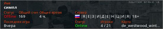Последний раз был в сети 21 час назад Игрок с таким ником замечен на 45 серверах