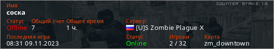 Играет на Counter Strike 1.6 сервере. Страна: РоссияПервый раз замечен 13:06 29.05.2022