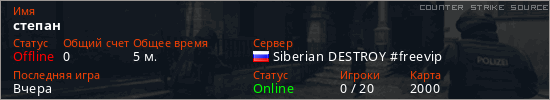 Последний раз был в сети Вчера Игрок с таким ником замечен на 22 серверах