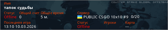 Играет на Counter Strike Global Offensive сервере. Страна: УкраинаПервый раз замечен 13:03 10.03.2026