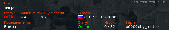 Играет на Counter Strike 1.6 сервере. Страна: РоссияПервый раз замечен 19:35 18.05.2023