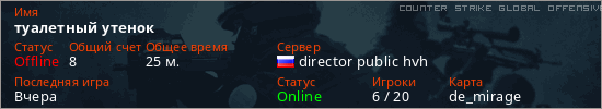 Последний раз был в сети Вчера Игрок с таким ником замечен на 5 серверах