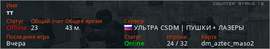 Последний раз был в сети Вчера Игрок с таким ником замечен на 26 серверах