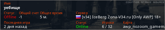 Играет на Counter Strike Source сервере. Страна: РоссияПервый раз замечен 16:09 18.01.2026