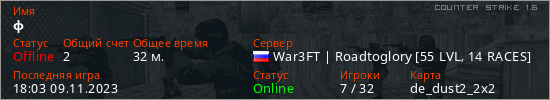 Играет на Counter Strike 1.6 сервере. Страна: РоссияПервый раз замечен 20:51 05.11.2022