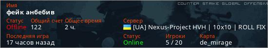 Последний раз был в сети 15 часов назад Игрок с таким ником замечен на 2 серверах