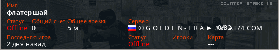 Последний раз был в сети 2 дня назад Игрок с таким ником замечен на 3 серверах