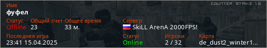 Играет на Counter Strike 1.6 сервере. Страна: РоссияПервый раз замечен 15:54 10.03.2024