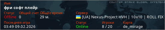 Играет на Counter Strike Global Offensive сервере. Страна: УкраинаПервый раз замечен 14:32 28.01.2026