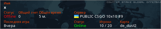 Последний раз был в сети Вчера Игрок с таким ником замечен на 34 серверах