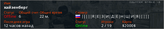 Последний раз был в сети 9 часов назад Игрок с таким ником замечен на 9 серверах