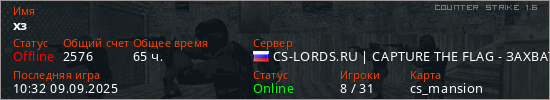 Последний раз был в сети 10:32 09.09.2025 Игрок с таким ником замечен на 45 серверах