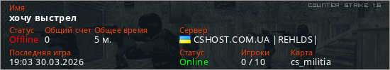 Играет на Counter Strike 1.6 сервере. Страна: УкраинаПервый раз замечен 18:55 30.03.2026