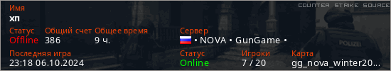 Играет на Counter Strike Source сервере. Страна: РоссияПервый раз замечен 16:39 14.08.2024