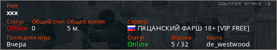 Последний раз был в сети Вчера Игрок с таким ником замечен на 34 серверах