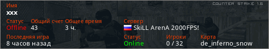 Последний раз был в сети Час назад Игрок с таким ником замечен на 33 серверах