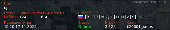 Последний раз был в сети 10:20 17.11.2025 Игрок с таким ником замечен на 27 серверах