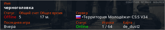 Последний раз был в сети Вчера Игрок с таким ником замечен на 6 серверах
