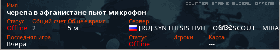 Играет на Counter Strike Global Offensive сервере. Страна: РоссияПервый раз замечен 19:20 19.01.2026
