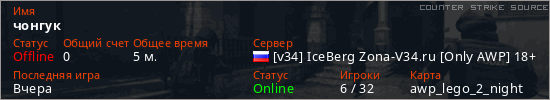 Последний раз был в сети Вчера Игрок с таким ником замечен на 4 серверах