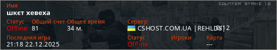 Играет на Counter Strike 1.6 сервере. Страна: УкраинаПервый раз замечен 18:35 22.12.2025