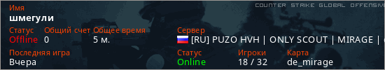 Играет на Counter Strike Global Offensive сервере. Страна: РоссияПервый раз замечен 20:09 29.03.2026