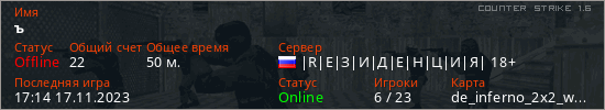 Последний раз был в сети 17:14 17.11.2023 Игрок с таким ником замечен на 31 сервере