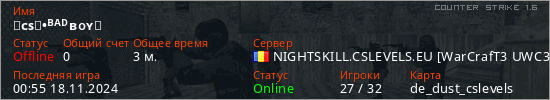 Играет на Counter Strike 1.6 сервере. Страна: РумынияПервый раз замечен 00:55 18.11.2024