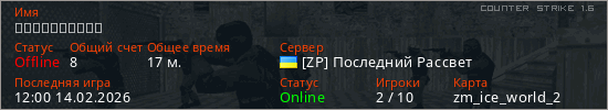 Играет на Counter Strike 1.6 сервере. Страна: УкраинаПервый раз замечен 02:14 14.02.2026